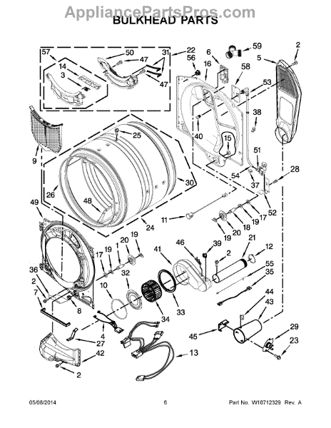 This bulkhead is the front structural panel that supports the dryer drum and seals the front of the cabinet to maintain proper airflow and drum alignment. Replacing a worn bulkhead restores stable drum rotation and prevents air leaks. What it does: