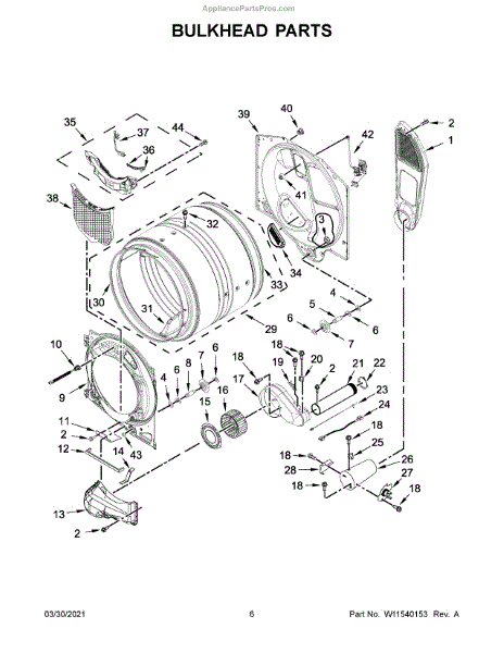 This bulkhead is the front structural panel that supports the dryer drum and seals the front of the cabinet to maintain proper airflow and drum alignment. Replacing a worn bulkhead restores stable drum rotation and prevents air leaks. What it does: