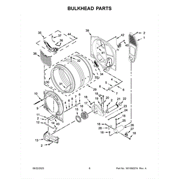 This bulkhead is the front structural panel that supports the dryer drum and seals the front of the cabinet to maintain proper airflow and drum alignment. Replacing a worn bulkhead restores stable drum rotation and prevents air leaks. What it does: