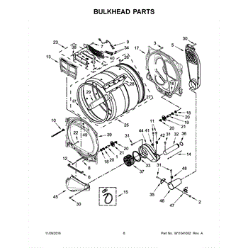 This bulkhead is the structural inner panel that supports and seals the appliance's tub and provides mounting for controls and seals. Replaces a damaged or cracked bulkhead to restore proper alignment and prevent leaks. What it does