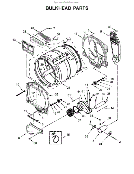 This bulkhead is the structural inner panel that supports and seals the appliance's tub and provides mounting for controls and seals. Replaces a damaged or cracked bulkhead to restore proper alignment and prevent leaks. What it does