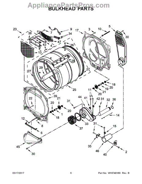 The Dryer Felt Seal is an OEM replacement part for Whirlpool dryers. Located around the drum, the felt seal provides a protective barrier between the drum and the cabinet. Causes include normal material wear over time and breakdown from high-heat conditions. Symptoms of a worn felt seal include: