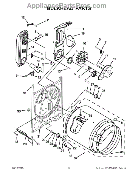 The Rear Panel is an OEM part for Whirlpool dryers. It is an outer protective panel located on the back interior of the dryer drum compartment and helps form the structural walls. The rear panel joins other interior pieces securely and assists with heat retention during the drying cycles.