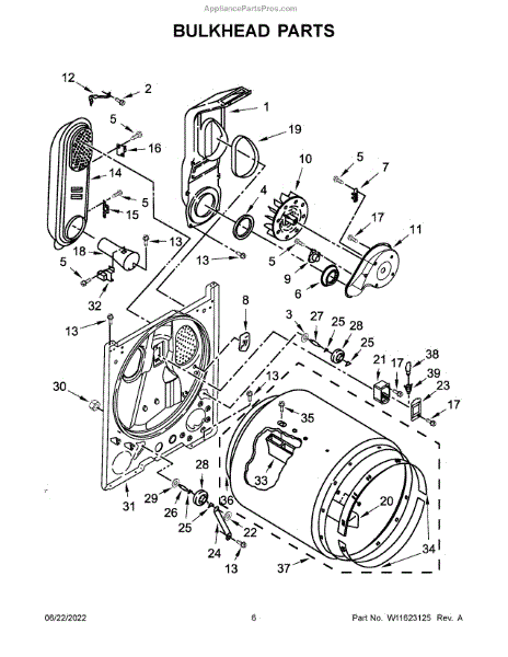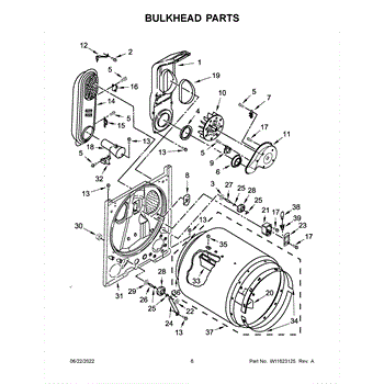 Replacement bulkhead that supports the front of the dryer drum and helps maintain correct drum alignment and airflow. Restores stable drum rotation and reduces rubbing, noise, and air leaks for more reliable drying performance. What it does: