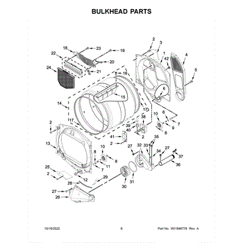 A replacement front drum bulkhead that supports the dryer drum and helps keep the front bearing and seal aligned for smooth rotation. Use this bulkhead to restore proper drum alignment and reduce rubbing, noise, and excessive front play. What it does: