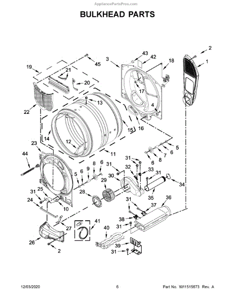 This bulkhead is the front structural panel that supports the dryer drum and seals the front of the cabinet to maintain proper airflow and drum alignment. Replacing a worn bulkhead restores stable drum rotation and prevents air leaks. What it does: