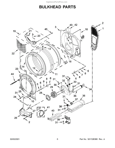 This bulkhead is the front structural panel that supports the dryer drum and seals the front of the cabinet to maintain proper airflow and drum alignment. Replacing a worn bulkhead restores stable drum rotation and prevents air leaks. What it does: