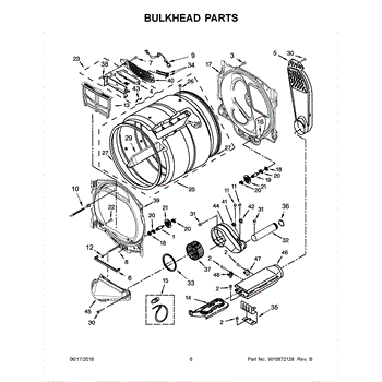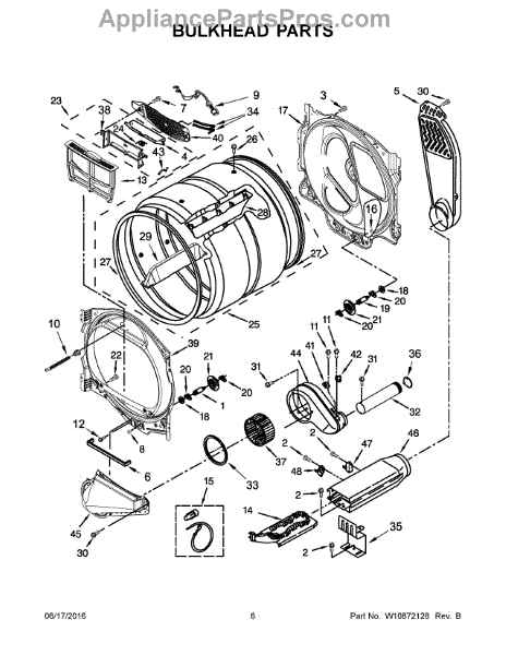 The Housing is an OEM component specifically designed for Whirlpool electric dryers. Found within the rear upper compartment, the square blower housing surrounds and supports the centrifugal fan assembly.
