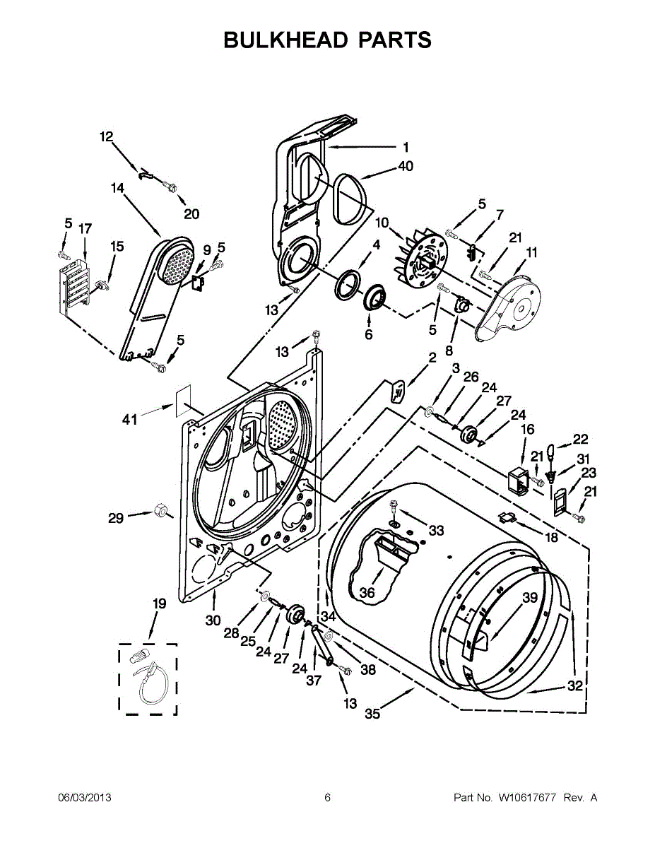 Replacement bulkhead that supports the front of the dryer drum and helps maintain correct drum alignment and airflow. Restores stable drum rotation and reduces rubbing, noise, and air leaks for more reliable drying performance. What it does: