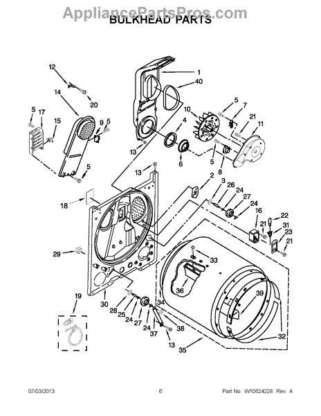 The PAD is an OEM part crafted specifically for Whirlpool dryers. This pad plays a crucial role in the dryer's operation by providing support and cushioning for the dryer drum. Its precise design and compatibility ensure proper fitting and reduce noise during the drying cycles, contributing to smoother operation.