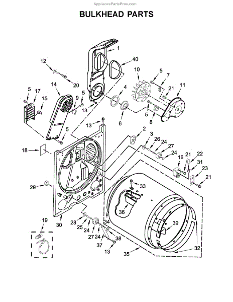 Replacement bulkhead that supports the front of the dryer drum and helps maintain correct drum alignment and airflow. Restores stable drum rotation and reduces rubbing, noise, and air leaks for more reliable drying performance. What it does: