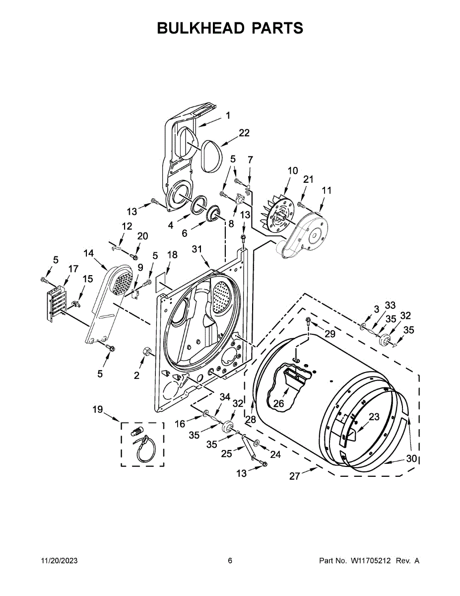 This bulkhead is the front tub housing that supports the washer drum and seals the washer cabinet to help contain water. Replaces a cracked or corroded housing to restore proper drum alignment and help prevent leaks. What it does: