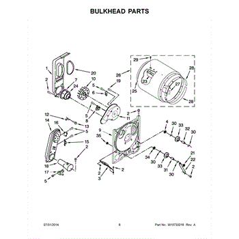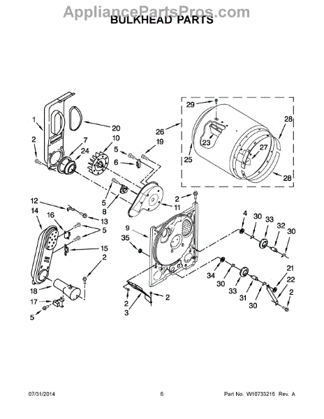 This bulkhead is the front tub housing that supports the washer drum and seals the washer cabinet to help contain water. Replaces a cracked or corroded housing to restore proper drum alignment and help prevent leaks. What it does: