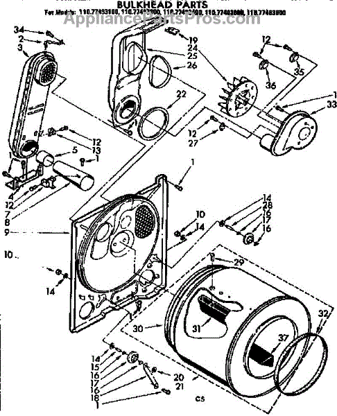 This bulkhead is the front tub housing that supports the washer drum and seals the washer cabinet to help contain water. Replaces a cracked or corroded housing to restore proper drum alignment and help prevent leaks. What it does: