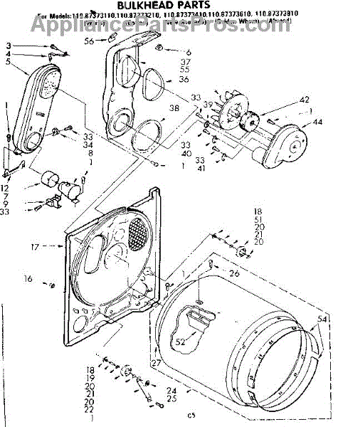 This bulkhead is the front tub housing that supports the washer drum and seals the washer cabinet to help contain water. Replaces a cracked or corroded housing to restore proper drum alignment and help prevent leaks. What it does: