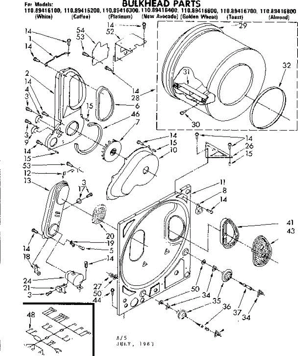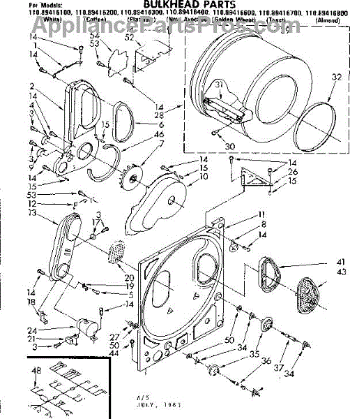 Seals the gap between drum and bulkhead to maintain airflow and quiet operation. Replace when worn to eliminate squealing, reduce lint buildup, and prevent fabric snags. Confirm fit by model number.