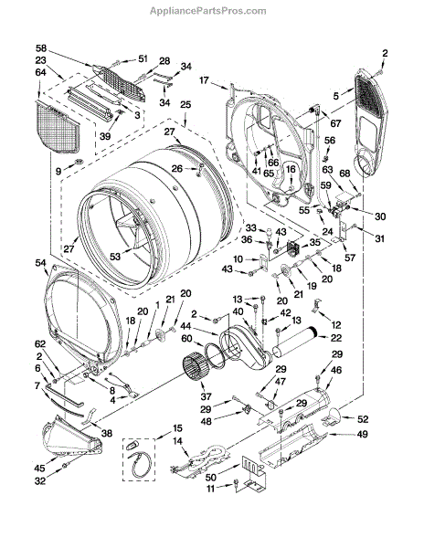 Replacement housing that supports and protects internal components in compatible Whirlpool appliances. Restores structural integrity to the cabinet, helping reduce vibration and keeping wiring and components enclosed for safe, reliable operation. What it does: