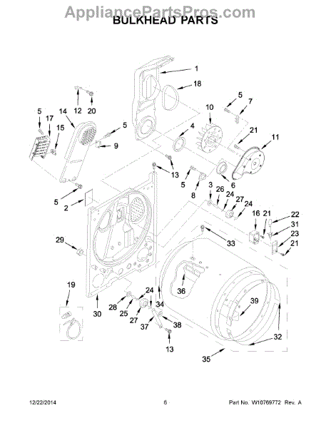 The Rear Panel is an OEM part for Whirlpool dryers. It is an outer protective panel located on the back interior of the dryer drum compartment and helps form the structural walls. The rear panel joins other interior pieces securely and assists with heat retention during the drying cycles.