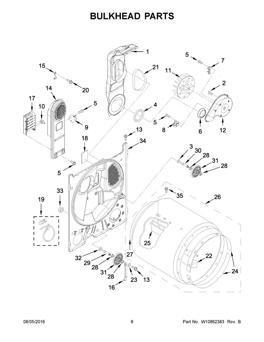 The Bulkhead is an OEM component for Whirlpool dryers. As a structural panel, it secures the rear of the appliance while enabling airflow behind sliding doors.