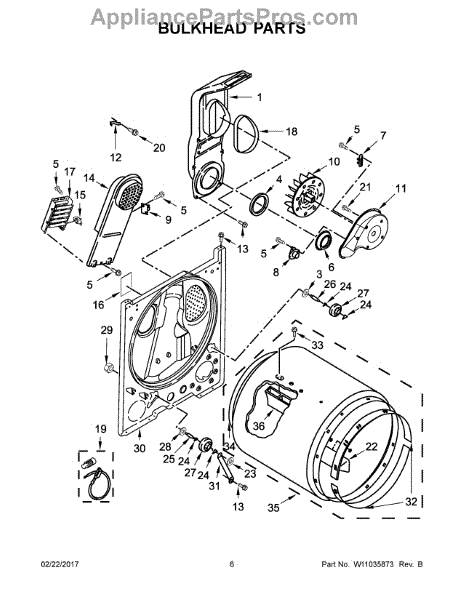 This rear drum seal is a flexible rubber gasket that fits around the back of the dryer drum to keep the drum centered and help prevent fabric damage and heat loss. Replacing a worn seal restores proper drum alignment and reduces noise. What it does: