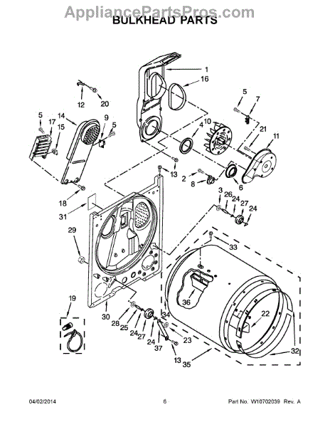 This bulkhead is the front tub housing that supports the washer drum and seals the washer cabinet to help contain water. Replaces a cracked or corroded housing to restore proper drum alignment and help prevent leaks. What it does: