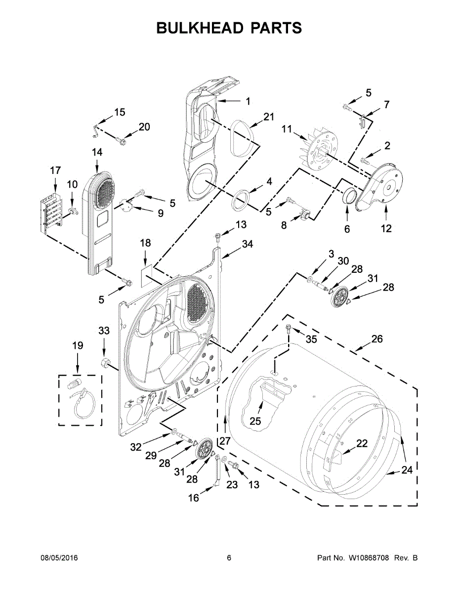 The Bulkhead is an OEM component for Whirlpool dryers. As a structural panel, it secures the rear of the appliance while enabling airflow behind sliding doors.