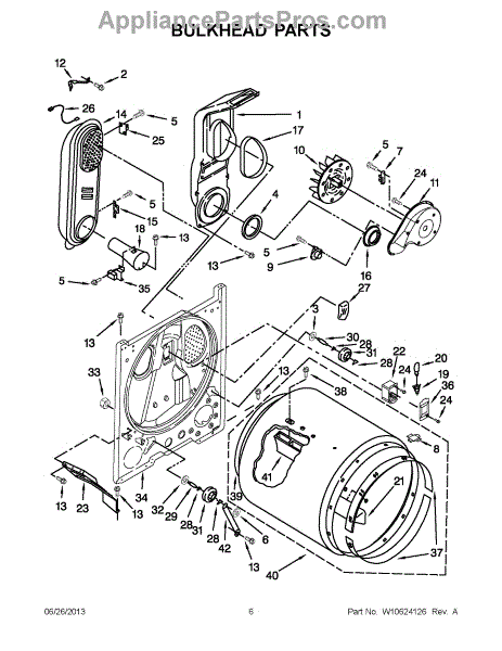 Replacement bulkhead that supports the front of the dryer drum and helps maintain correct drum alignment and airflow. Restores stable drum rotation and reduces rubbing, noise, and air leaks for more reliable drying performance. What it does: