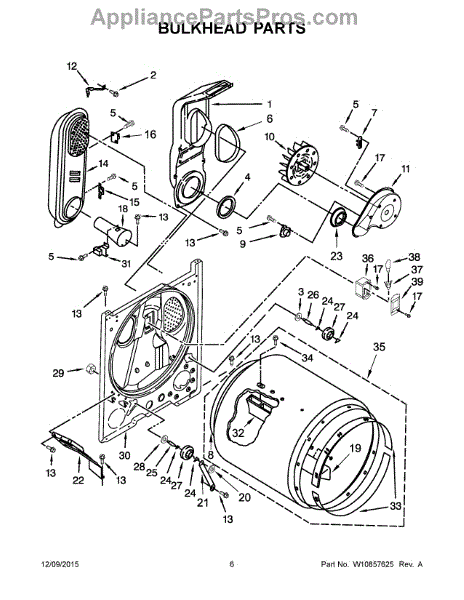 The Rear Panel is an OEM part for Whirlpool dryers. It is an outer protective panel located on the back interior of the dryer drum compartment and helps form the structural walls. The rear panel joins other interior pieces securely and assists with heat retention during the drying cycles.