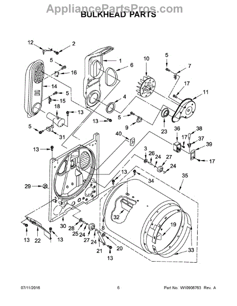 This OEM Whirlpool part is also compatible with Maytag, KitchenAid, Jenn-Air, Amana, Magic Chef, Admiral, Norge, Roper, and Kenmore dryer models.