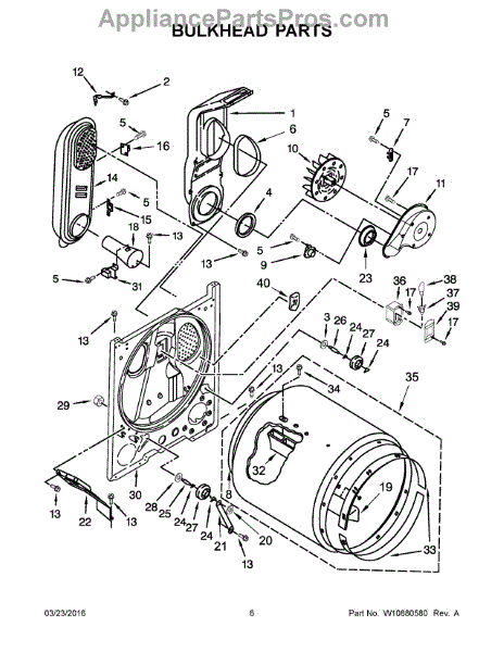 Replacement bulkhead that supports the front of the dryer drum and helps maintain correct drum alignment and airflow. Restores stable drum rotation and reduces rubbing, noise, and air leaks for more reliable drying performance. What it does:
