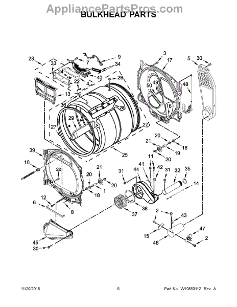 The washer is an OEM replacement part for Whirlpool clothes dryers. This part is located on the drum roller support shaft in your dryer. The exterior of the washer is 1 inch in diameter with a hole in the middle and is made of metal. They are installed alongside the drum support rollers and idler pulleys. They help prevent the rollers and pulleys from bumping up against the brackets they are installed on. If you are replacing the rollers, we suggest you replace the washers at the same time. Causes can be normal wear to bearing surfaces over extended use cycles. Accidental impacts may also potentially bend or damage shaft components. Symptoms of a bad roller shaft include: