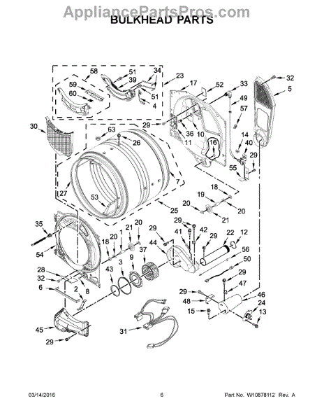 This blower housing assembly replaces the blower chamber that supports the blower wheel and routes air through the dryer for proper tumbling and drying. Restores correct airflow and helps reduce overheating or poor drying performance. What it does: