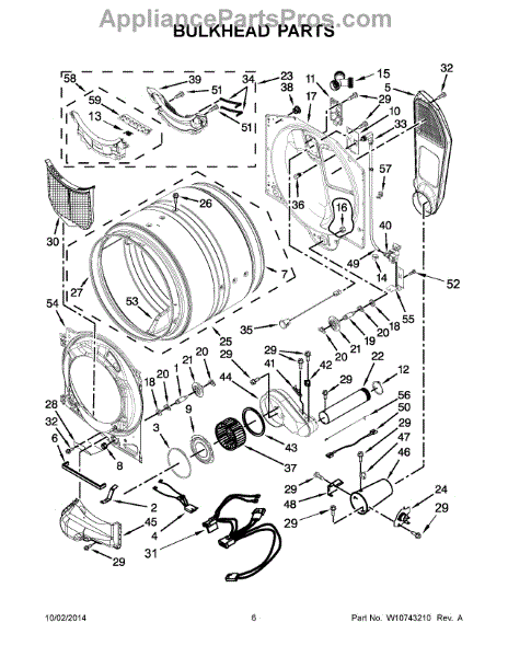 This bulkhead is the front structural panel that supports the dryer drum and seals the front of the cabinet to maintain proper airflow and drum alignment. Replacing a worn bulkhead restores stable drum rotation and prevents air leaks. What it does: