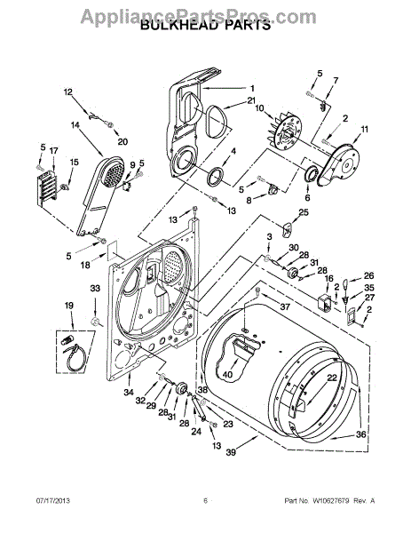 Replacement bulkhead that supports the front of the dryer drum and helps maintain correct drum alignment and airflow. Restores stable drum rotation and reduces rubbing, noise, and air leaks for more reliable drying performance. What it does: