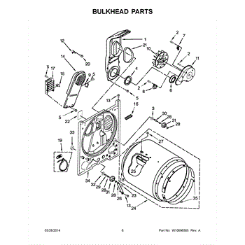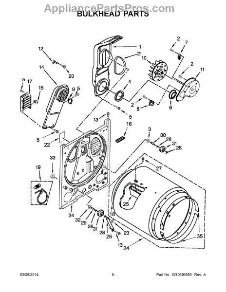 This bulkhead is the front tub housing that supports the washer drum and seals the washer cabinet to help contain water. Replaces a cracked or corroded housing to restore proper drum alignment and help prevent leaks. What it does: