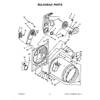 Replacement bulkhead that supports the front of the dryer drum and helps maintain correct drum alignment and airflow. Restores stable drum rotation and reduces rubbing, noise, and air leaks for more reliable drying performance. What it does: