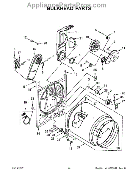 Replacement bulkhead that supports the front of the dryer drum and helps maintain correct drum alignment and airflow. Restores stable drum rotation and reduces rubbing, noise, and air leaks for more reliable drying performance. What it does: