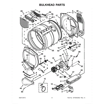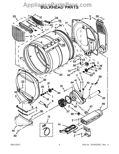 This front drum bulkhead is the stationary front panel that supports the dryer drum and seals the drum opening to maintain proper airflow and drum alignment for reliable drying performance. What it does: