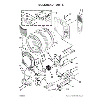 This bulkhead is the front interior panel that supports the drum and helps direct dryer airflow for efficient tumbling and exhaust. It restores proper drum alignment and airflow when the original panel is worn or damaged. What it does: