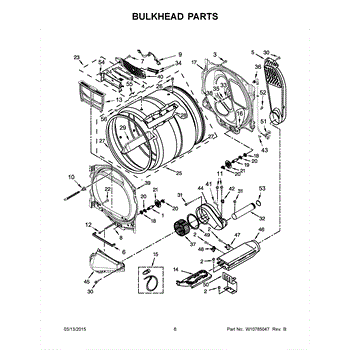 The Housing is an OEM component specifically designed for Whirlpool electric dryers. Found within the rear upper compartment, the square blower housing surrounds and supports the centrifugal fan assembly.