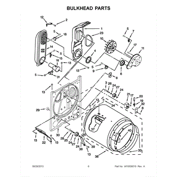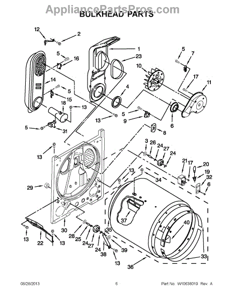Replacement bulkhead that supports the front of the dryer drum and helps maintain correct drum alignment and airflow. Restores stable drum rotation and reduces rubbing, noise, and air leaks for more reliable drying performance. What it does: