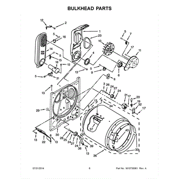 Replacement bulkhead that supports the front of the dryer drum and helps maintain correct drum alignment and airflow. Restores stable drum rotation and reduces rubbing, noise, and air leaks for more reliable drying performance. What it does: