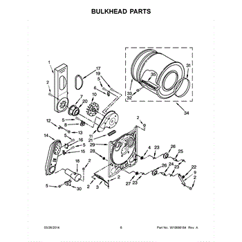 This bulkhead is the front tub housing that supports the washer drum and seals the washer cabinet to help contain water. Replaces a cracked or corroded housing to restore proper drum alignment and help prevent leaks. What it does: