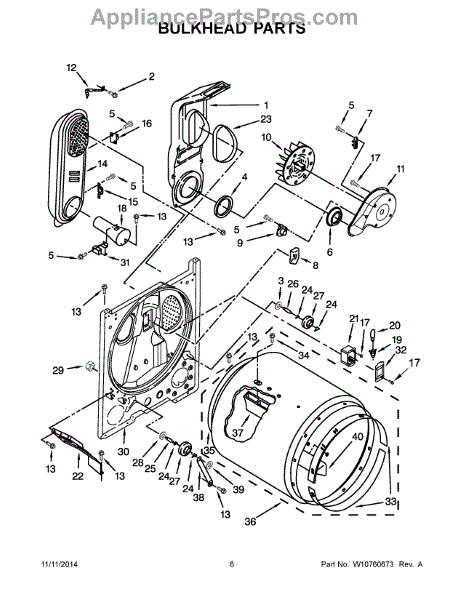 Replacement bulkhead that supports the front of the dryer drum and helps maintain correct drum alignment and airflow. Restores stable drum rotation and reduces rubbing, noise, and air leaks for more reliable drying performance. What it does: