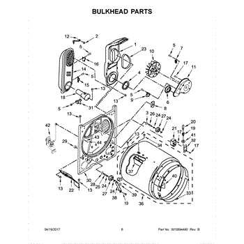The Push Clip is an OEM replacement part for Whirlpool dryers. Situated internally near the rear cylinder wall, it firmly secures the drum support roller assembly. Causes of failure relate to fatigue from years of absorbing drum impacts and associated mechanical stresses. Corrosion penetration if moisture enters the clip mounting area increases operational resistance over time as well. Symptoms consist of: