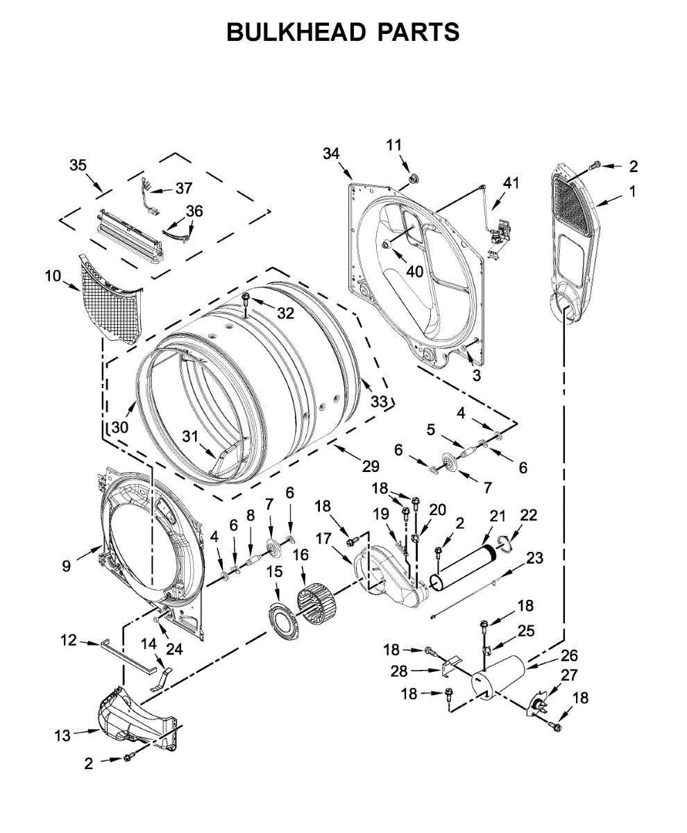 This bulkhead is the front interior panel that supports the drum and helps direct dryer airflow for efficient tumbling and exhaust. It restores proper drum alignment and airflow when the original panel is worn or damaged. What it does:
