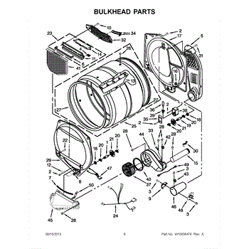 This front drum bulkhead is the stationary front panel that supports the dryer drum and seals the drum opening to maintain proper airflow and drum alignment for reliable drying performance. What it does: