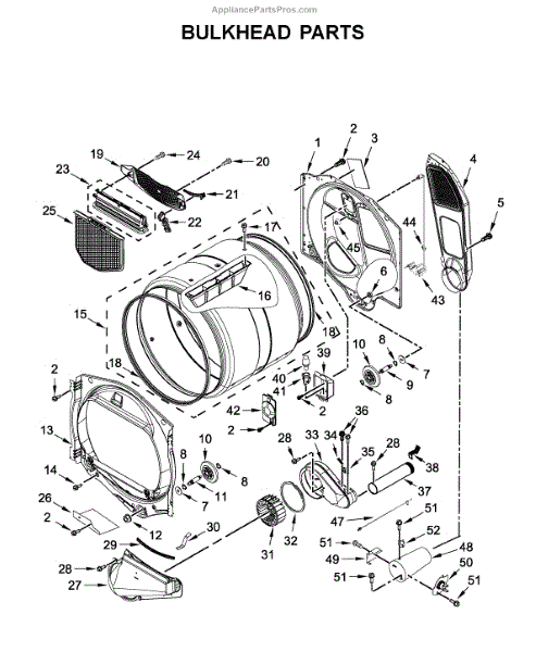 This is a drum assembly used in many home dryers. The component is located inside the appliance and is tasked with holding the clothing during a dryer cycle. It is made of durable materials but can experience wear and tear or damage that cause it to malfunction. If the drum assembly is worn or damaged, it may cause the appliance to buzz or squeal, start and stop, and seize up during use.If the drum assembly is damaged or worn, it will need to be replaced. This will require a set of tools and a pair of work gloves. Before starting the replacement process, make sure the dryer is unplugged from the wall. The dryer will need to be disassembled to access the drum assembly. The belt can be used to pull out the drum so the new component can be installed. Replace the part and reassemble the dryer. It should be plugged back in before use.This part is sold on an individual basis. It is designed to be used with several dryers created by Admiral, Amana, Maytag, Kenmore, and Whirlpool. The drum assembly is an authentic OEM replacement part that is sourced directly from the manufacturer.