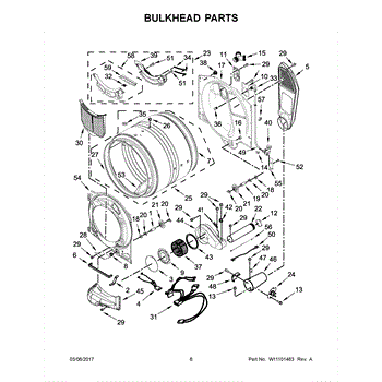 A replacement front drum bulkhead that supports the dryer drum and helps keep the front bearing and seal aligned for smooth rotation. Use this bulkhead to restore proper drum alignment and reduce rubbing, noise, and excessive front play. What it does: