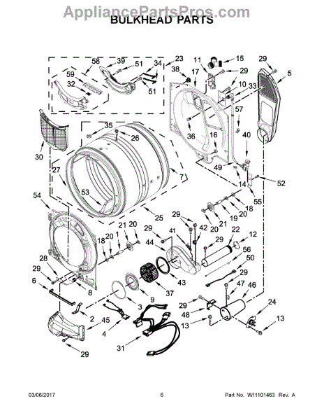 This blower housing assembly replaces the blower chamber that supports the blower wheel and routes air through the dryer for proper tumbling and drying. Restores correct airflow and helps reduce overheating or poor drying performance. What it does: